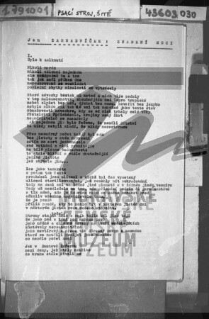 Samizdat básně Jana Zahradníčka s názvem Znamení moci.