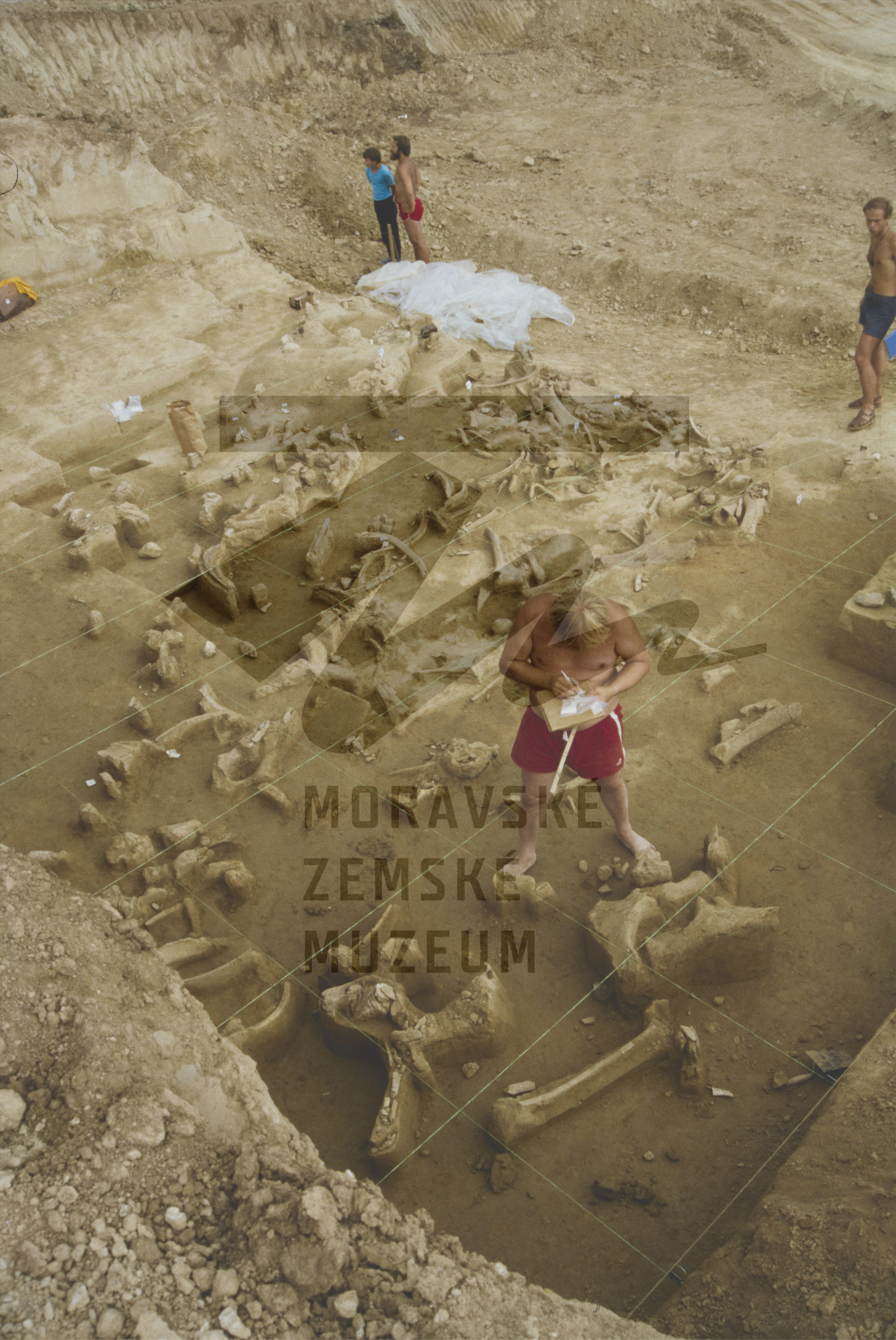 Akumulace mamutích kostí v gravettienské vrstvě.