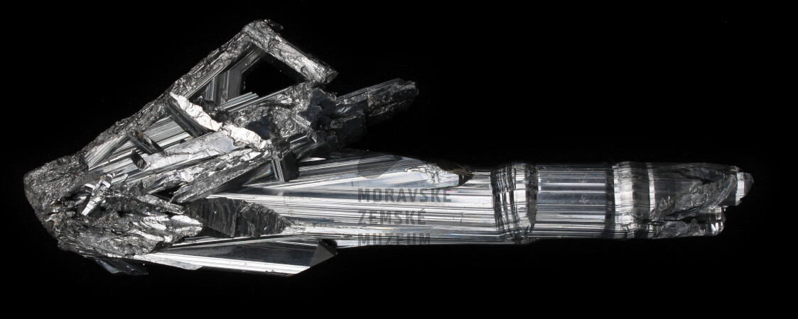 Antimonit, důl Ichinokawa, Japonsko, velikost vzorku 20 x 7 cm